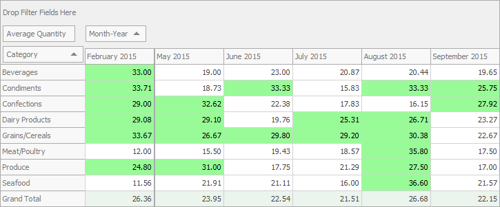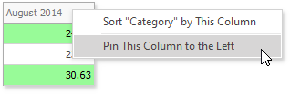The Pivot Grid Control allows you to pin columns to the left or rightmost edge. The pinned columns are never scrolled horizontally, so you can use them as a reference point for adjacent cell values.