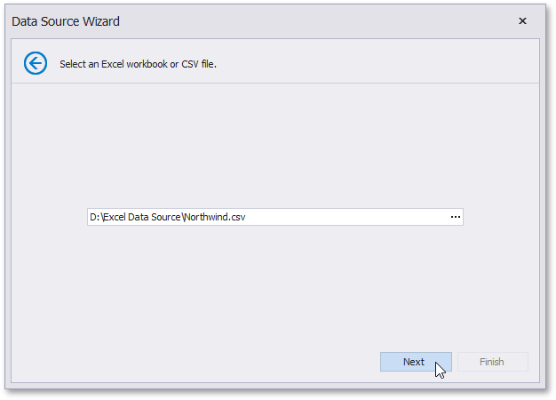 On the first page of the invoked Data Source Wizard, select Excel File and click Next.
