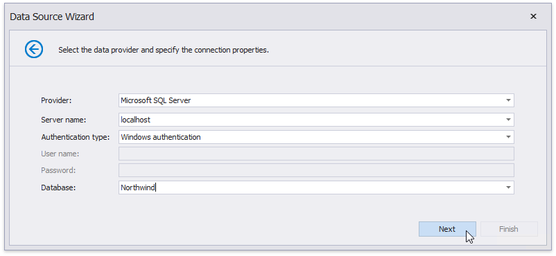 Click Finish to complete the Data Source Wizard. If the selected queries or stored procedures contain any parameters, you can go to the next wizard page and define their values.