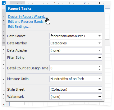 Click the report's smart tag, expand the Data Source property's drop-down menu, and click Add New DataSource.