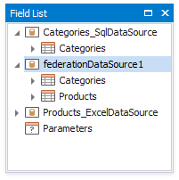 - If the initial data source contains data at the root level (as the Excel data source), the federated query's name equals to the data source name.