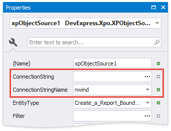 You can also right-click the XPObjectSource component in the Report Explorer and choose Configure Connection... to invoke the wizard and reconfigure the connection string.