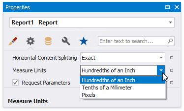Changing the system of measurement results in converting the corresponding property values and updating the layout of all report elements in the Report Designer. Notably, the system of measurement determines the minimum increment with which an element's location and size can be changed.