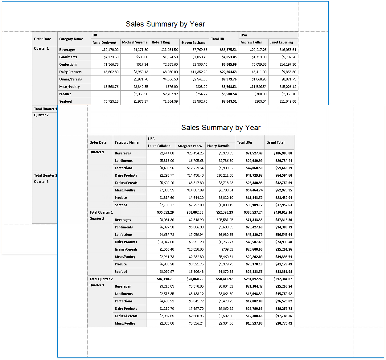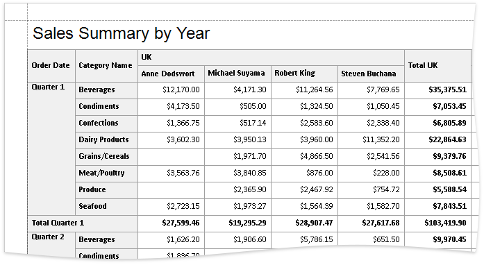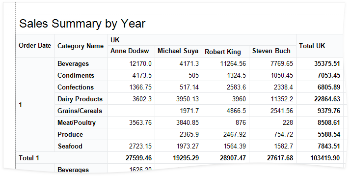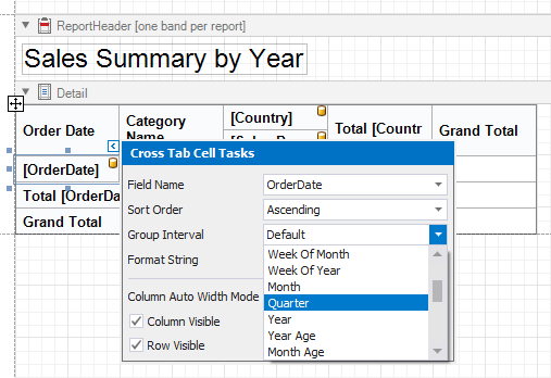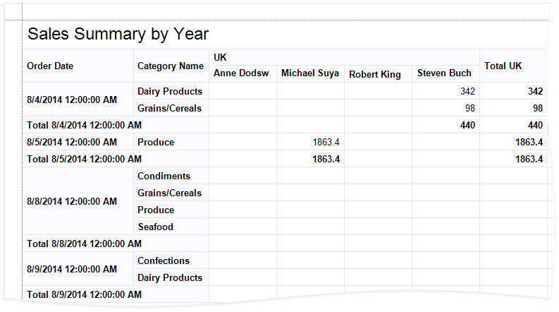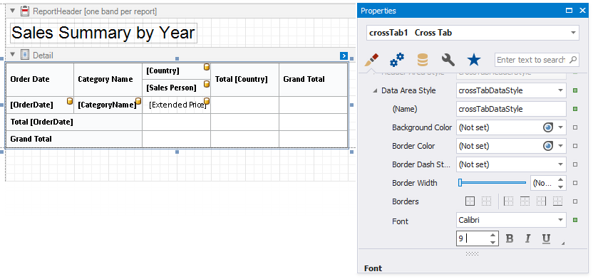 This tutorial describes how to use the Cross Tab control to create a Sales Summary report.