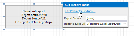 Bind the subreport's parameter used as a filter criterion to the master report's corresponding data field, which serve as a source of the parameter value. To do this, click the subreport's smart tag and select Edit Parameter Bindings in the invoked actions list.