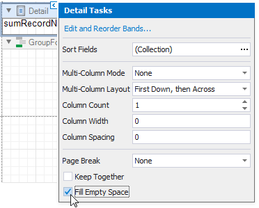 Click the Detail band's smart tag and enable the Fill Empty Space property.