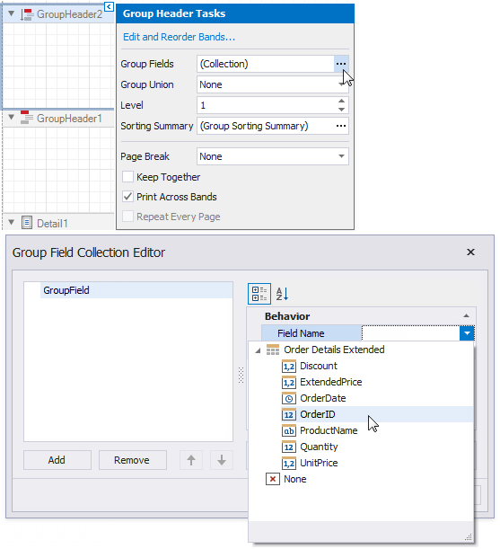 Add Cross-Band Content to Report Groups