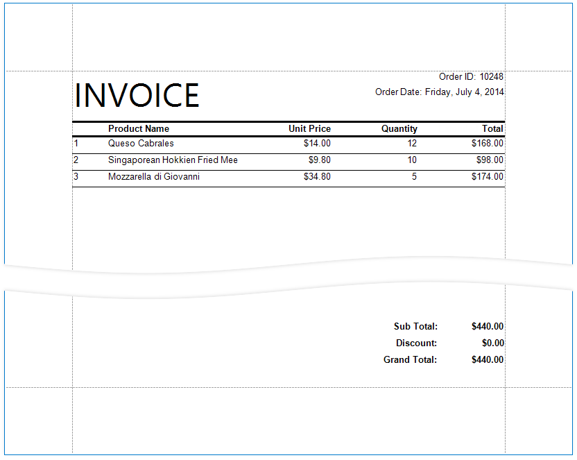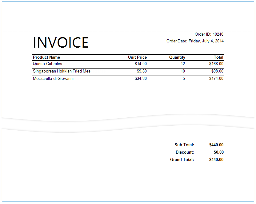 - Populate the empty space between the detail and footer information with blank rows.