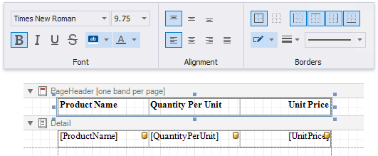 To provide dynamic content to the report, switch to the Field List again and select the same fields. Click the selected fields and drag-and-drop them onto the Detail band.