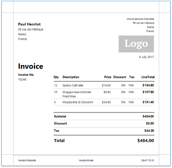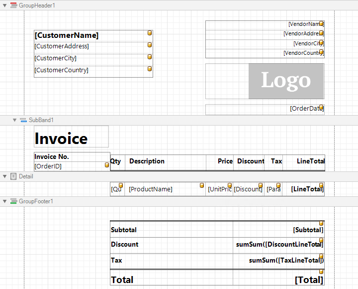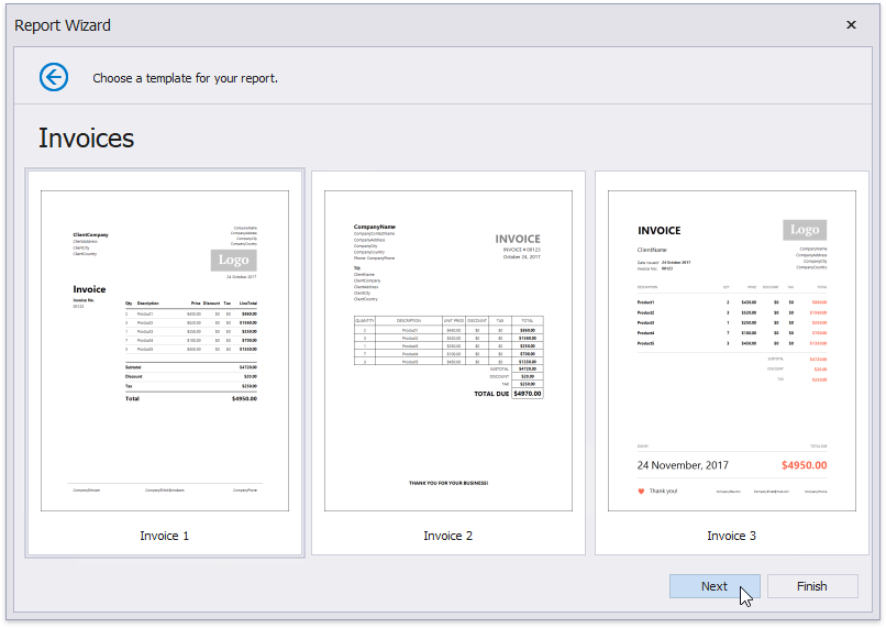 See the Create an Invoice Manually topic to learn how to create an invoice report with a custom layout from scratch.