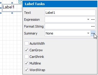 Drop the Label control onto the added band and click its smart tag. In the invoked Label Tasks window, click the Summary field's ellipsis button.