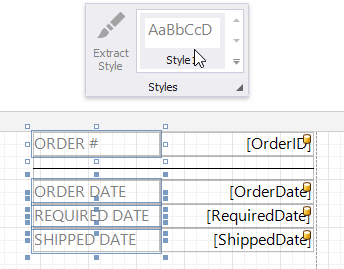 Apply a style to report elements by selecting them and clicking the created style in the Styles gallery.