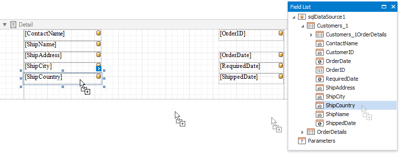 Switch to the Field List and drop the required data fields onto the Detail band. New controls of appropriate types are automatically created and bound to the corresponding fields.