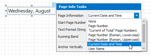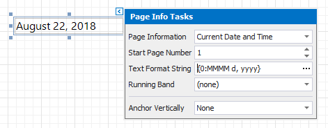 Add the Page Info control to the Page Header band to display system date in the report.