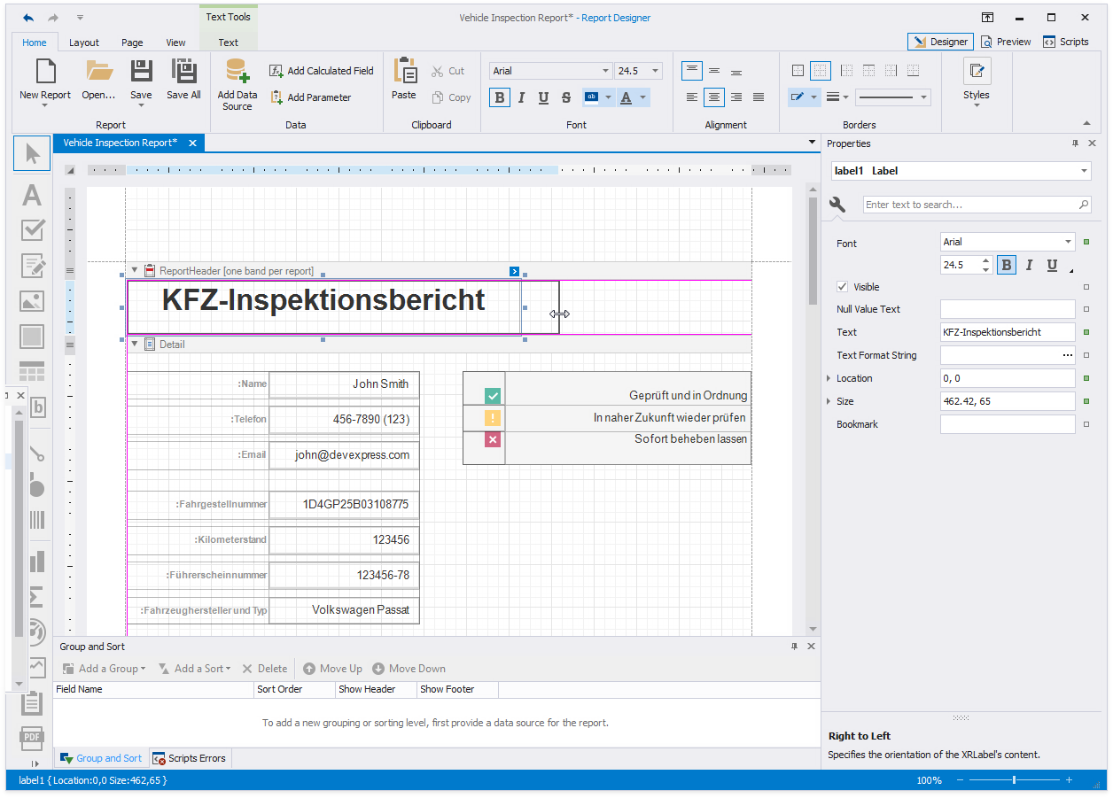 To localize a report, open it in the Report Designer and specify a report language other than Default. Change the reporting controls' text, sizes, and locations and save the report. All language-specific changes are saved with the report. When a localized report is displayed in Preview, the document contains modifications that match the application's culture.