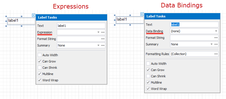 Use this section if data bindings are enabled in the Report Designer (the Label's smart tag includes the Data Binding property).