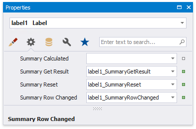 When selecting the Custom option, three more events are added to the label's Scripts list: Summary Get Result, Summary Reset and Summary Row Changed.