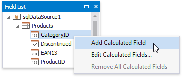 Drop the required data fields and the created calculated field from the Field List on the report's Detail band.
