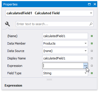 Switch to the Property Grid and set the Field Type property to String. Then. click the Expression property's ellipsis button.