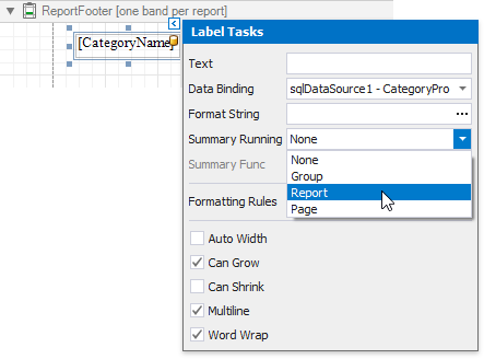 Use this approach if data bindings are enabled in the Report Designer (the Label's smart tag includes the Data Binding property).