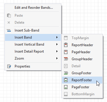 Right-click the report's surface and add a Report Footer to the report.