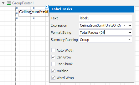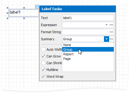 Click the label's smart tag and set its Summary property to Group.