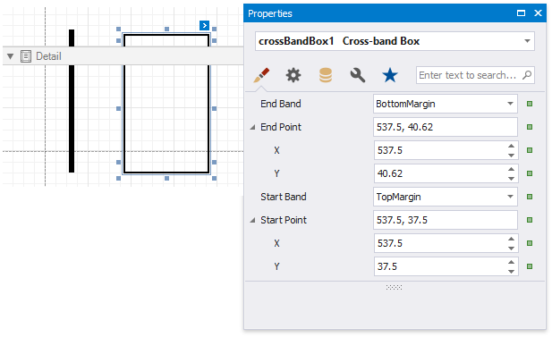 • Start Point - specifies the exact coordinates (measured in report units) within the start band where the control starts to draw;