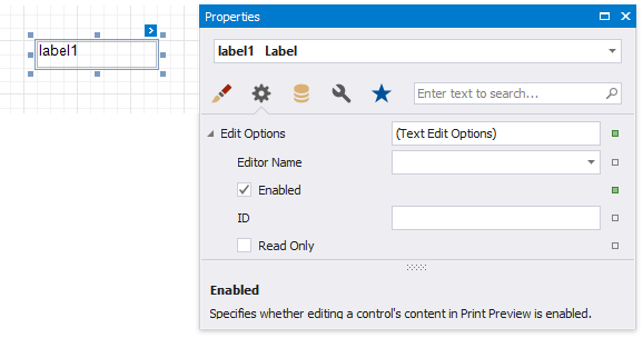 Check the Enabled option in the Edit Options category to allow users to edit a label's content in Print Preview mode.