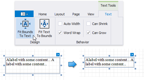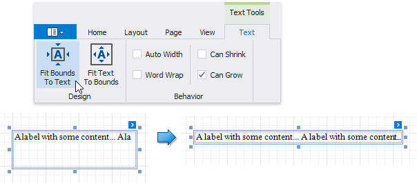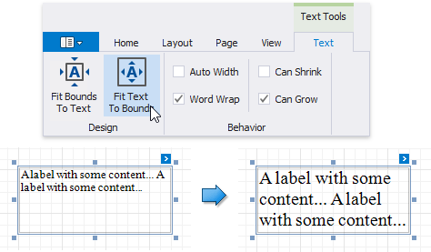 Use the Fit Text To Bounds button to adjust the control's font size to fit its area. The Word Wrap option defines whether the text can occupy multiple lines or should be in a single line.