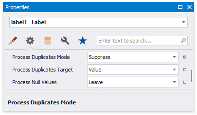 The Process Duplicates Mode, Process Duplicates Target and Process Null Values options enable you to hide a control when a duplicated or null value appears in an assigned data source.