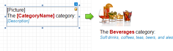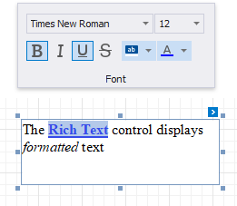 The Rich Text control displays formatted text (static, dynamic or mixed) in your report.