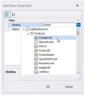 Set the Binding property to the report's group field and click OK.