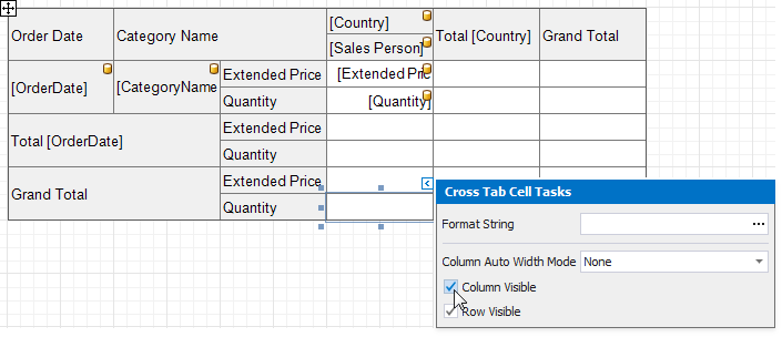 - Set the Field Name property to the name of an assigned data source's field. You can also define a field that is not currently displayed in the Cross Tab.