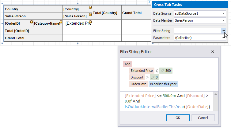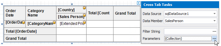 The Cross Tab uses and displays values of data fields from an assigned data source. To provide values outside the data source, use internal Cross Tab parameters. Each parameter is stored in the Parameters collection.