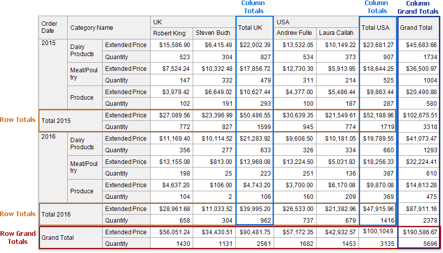 - Column Grand Totals - against all the columns.
