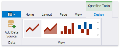To create a new data source for a sparkline, open the Toolbar's Sparkline Tools contextual tab and click the Add Data Source button. This invokes the Data Source Wizard that allows you to set up a required data source.
