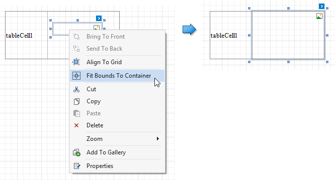If a table cell includes only one control, you can right-click this control and use the Fit Bounds to Container command in the context menu. The same command is available in the toolbar's Layout tab. This command resizes the control so that it occupies all the available cell space (excluding borders).