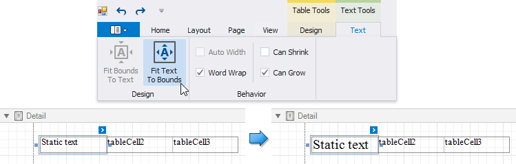 You can adjust the font size of a cell's static text to fit into the cell's boundaries. Use the Fit Text to Bounds button in the toolbar's Text contextual tab, or right-click this cell and select Fit Text to Bounds in the context menu.