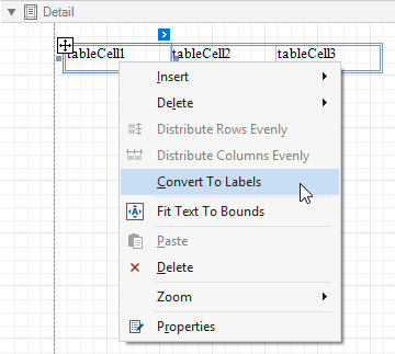 To transform a table into a set of Label controls, right-click a table or any of its cells and select Convert To Labels. Table cells containing other controls are converted to Panel controls.