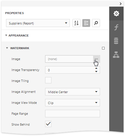 For a picture watermark, you need to specify an image. To do this, click the ellipsis button for the Image property.