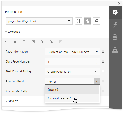 To change the control's display format, specify the Text Format String property (e.g., Page {0} of {1}, to display the current page number out of the total number of pages) in the Actions category.