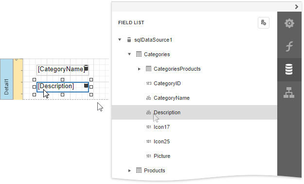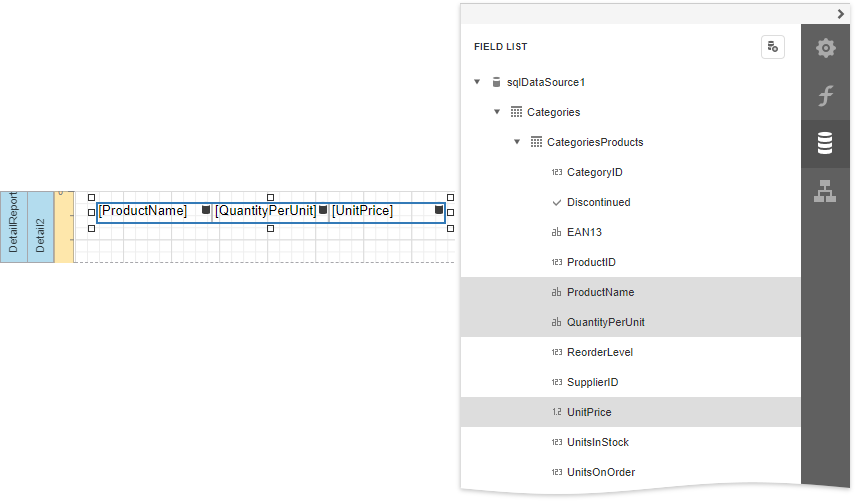 Drop the required data fields from the Field List onto the Detail band.