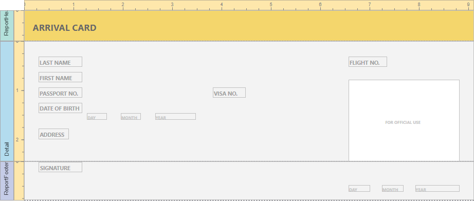 Add the Label controls to the report and arrange them according to the form's template. Set the labels' Text property to the form's field names.