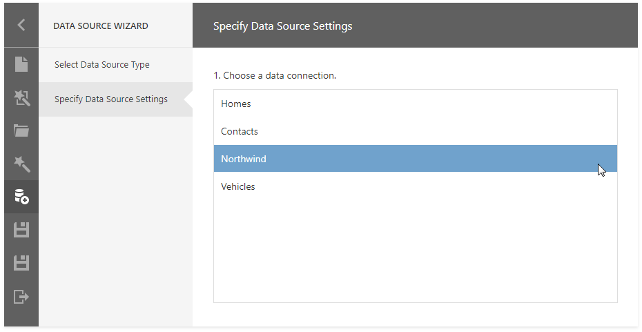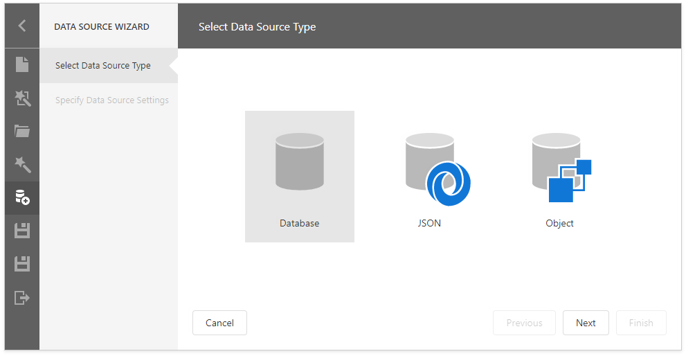 Select Database on the first page of the invoked Data Source Wizard and click Next.