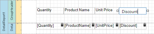 Add the Group Header band to the detail report to display captions for table columns. Select the Detail Report band and click Insert Group Header Band in the Actions category.