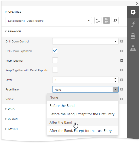 Select the Detail Report band, expand the Behavior category and set the band's Page Break property to After the Band to print each order on a separate page.