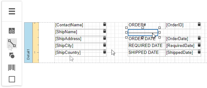 Perform the following steps to create a detail report and construct its layout to show the order details in a tabular form:
