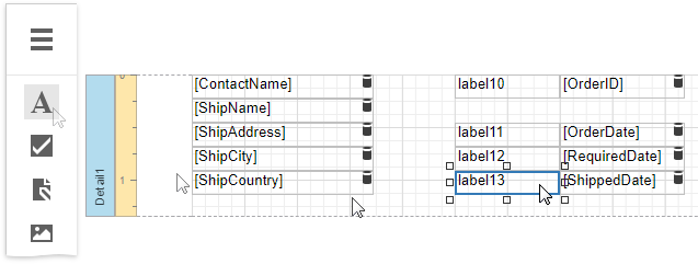 Switch to the Field List and drop the required data fields onto the Detail band. New controls of appropriate types are automatically created and bound to the corresponding fields.