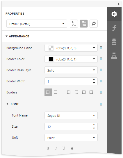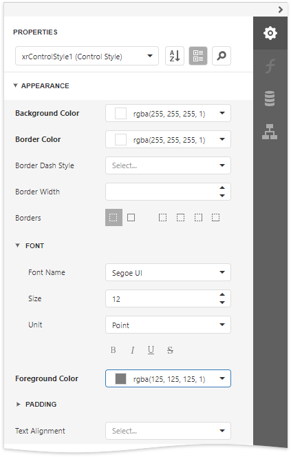 button in the Report Explorer. This opens the Properties panel where you can adjust the settings of the selected style.