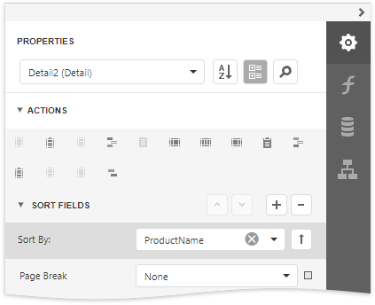 Select the Detail band in the detail report. Select the Sort Fields section in the Actions category and add a new sort field to sort the detail report's data by the required data field.